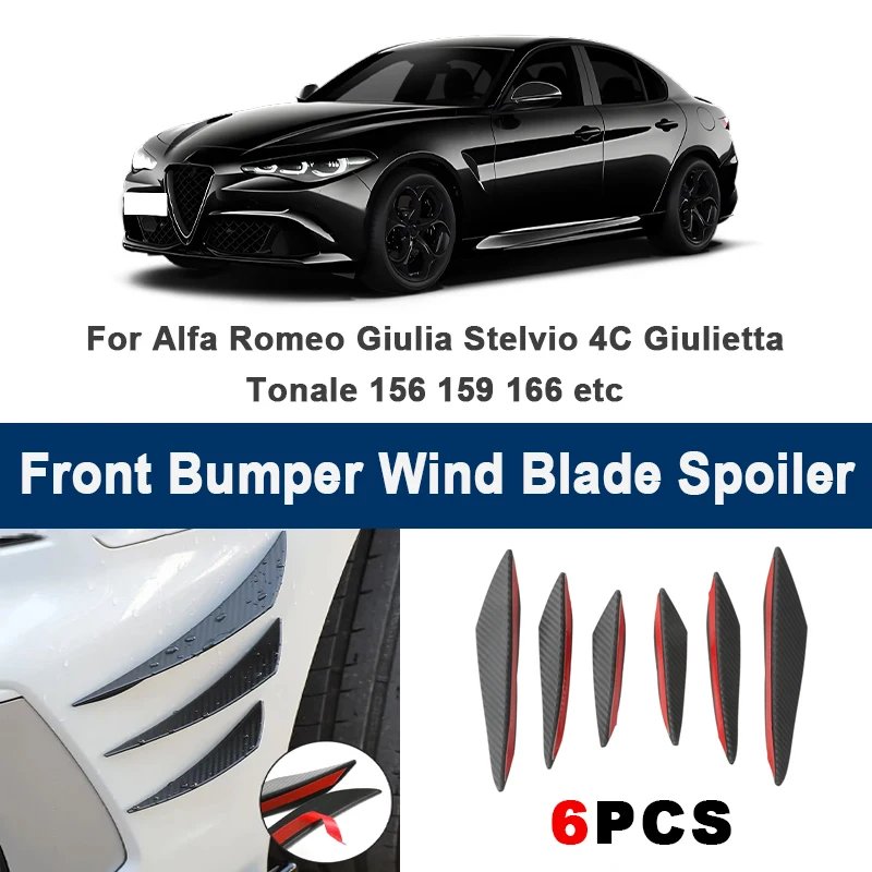 Elevate your Alfa Romeo's performance and style today with our 6pcs Front Bumper Lip Side Splitter Fins Wind Blade Spoiler. Order now to experience the difference!