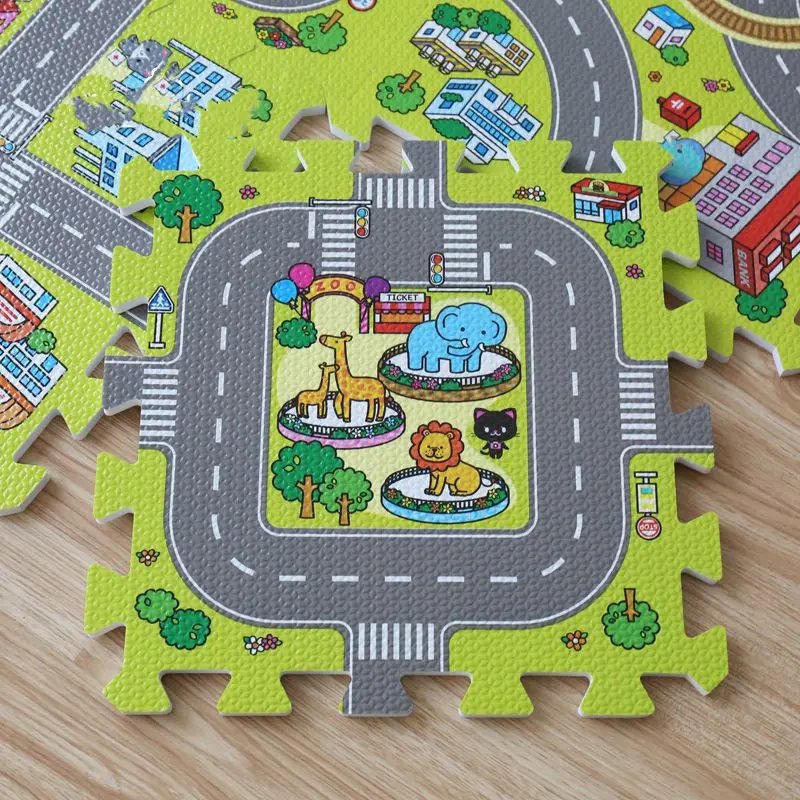 • 9-Piece Set: Includes a variety of traffic-themed mats, creating a vibrant play area.