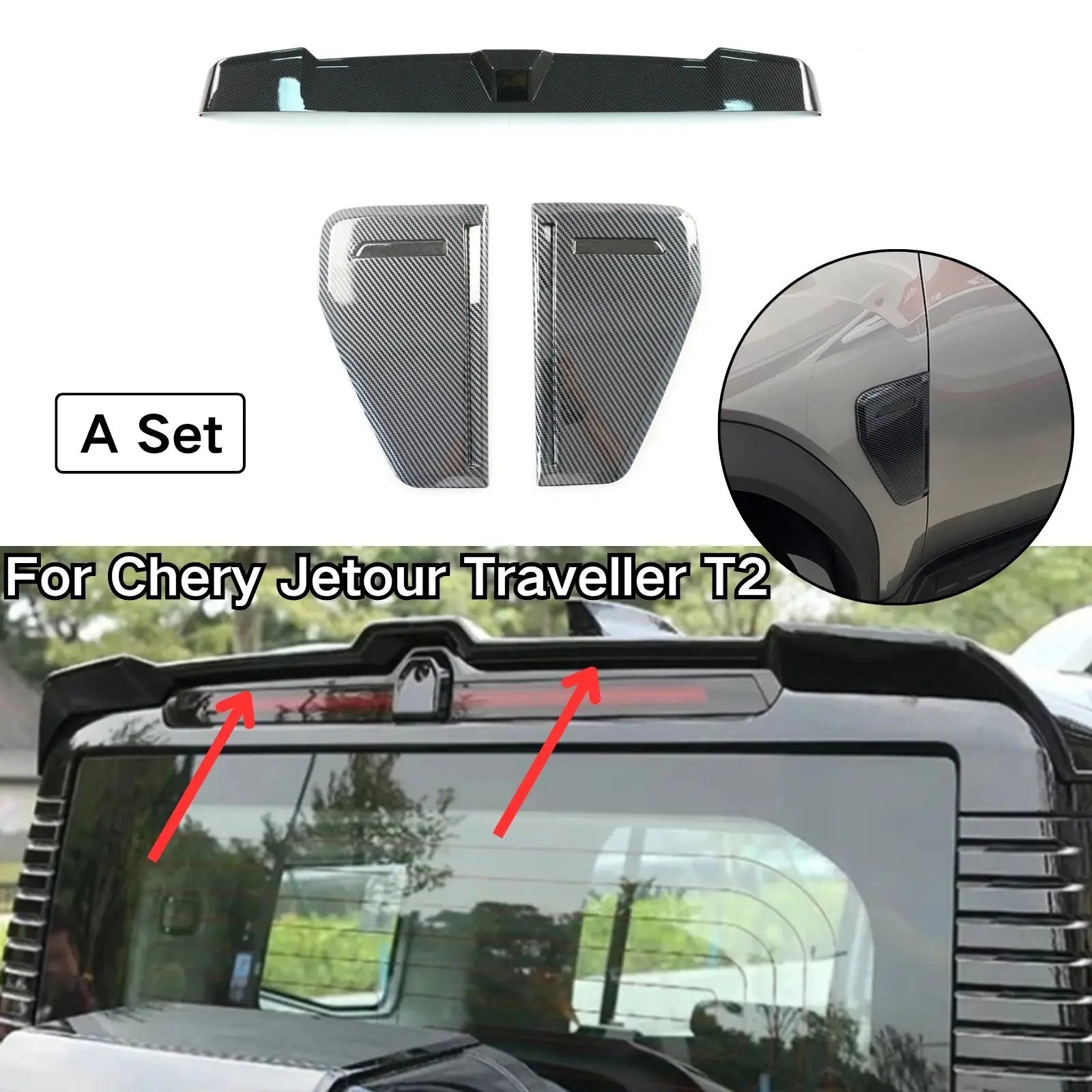 Enhance your Chery Jetour Traveler T2's style and performance with our Rear Roof Spoiler Car Leaf Panel Decorative Cover. Designed specifically for 2023 and 2024 models, this premium accessory adds a touch of elegance while improving aerodynamics.