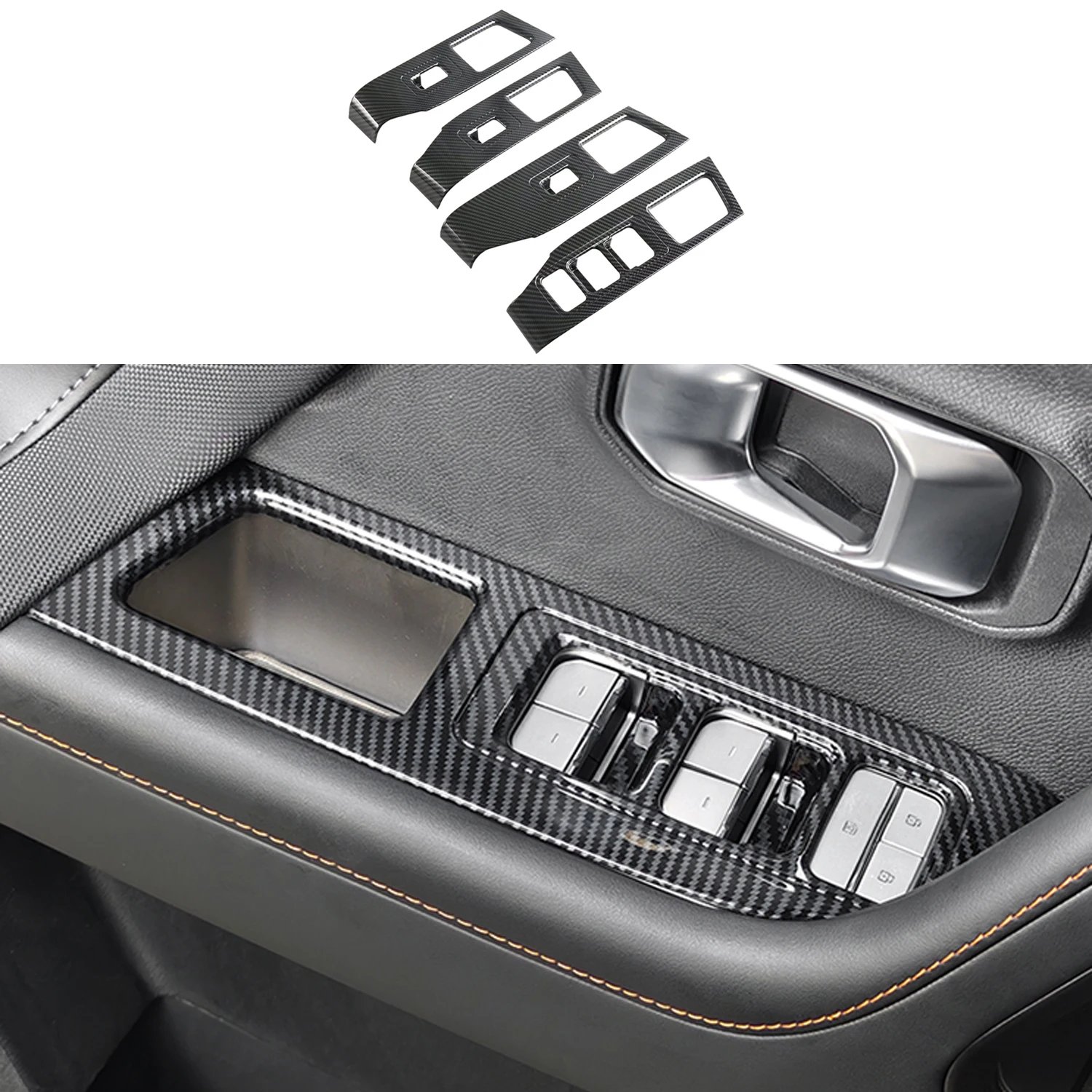 For Jetour Freedom Shanhai T1 2024-2025 Car Interior Window Lift Switch Button Cover Trim Overlay - Carbon Fiber Style ABS (4pcs)