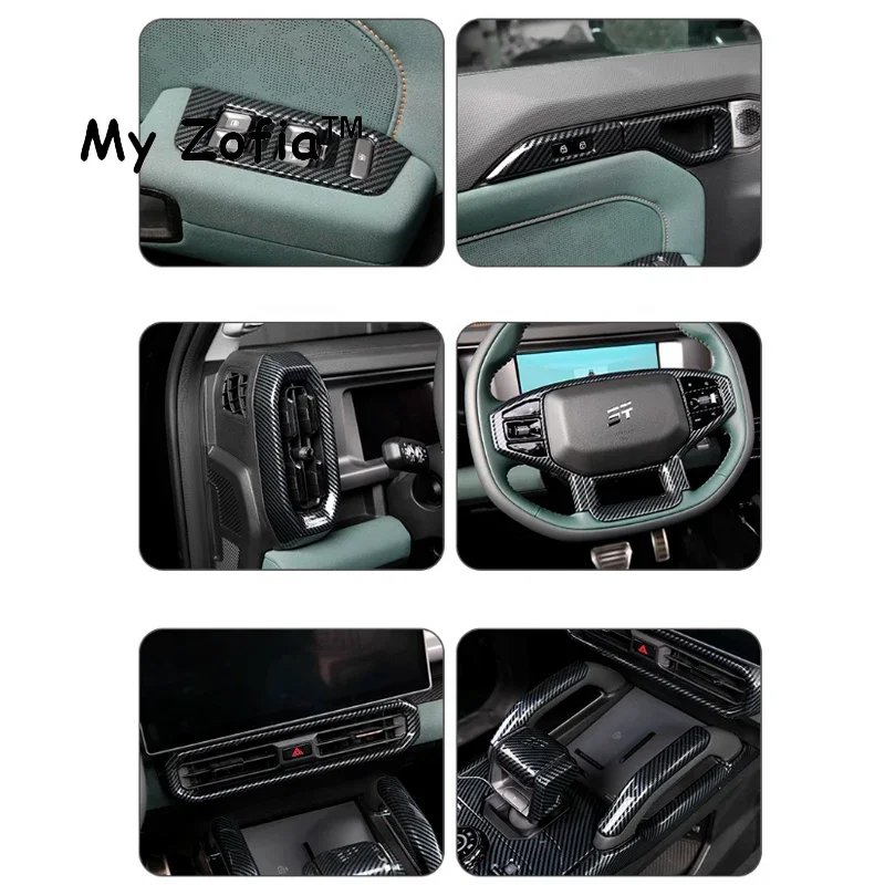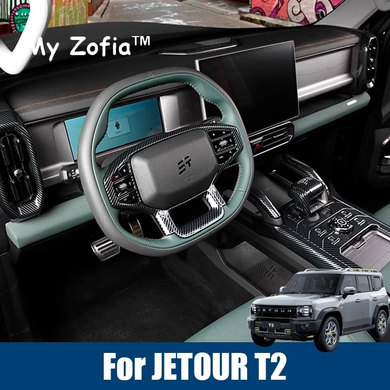 For JETOUR T2 Shanhai T2 2023-2026 Car ABS Carbon Fiber Interior Patch Trim Frame Sticker Protection Accessories