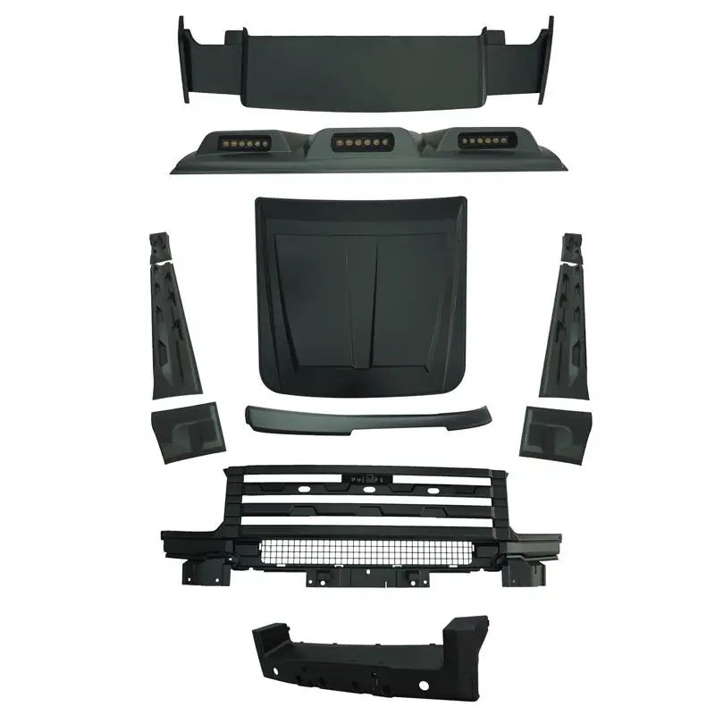 - Complete Kit: Includes front bumper, grille, bull bar, side skirts, and bonnet hood for a cohesive look.