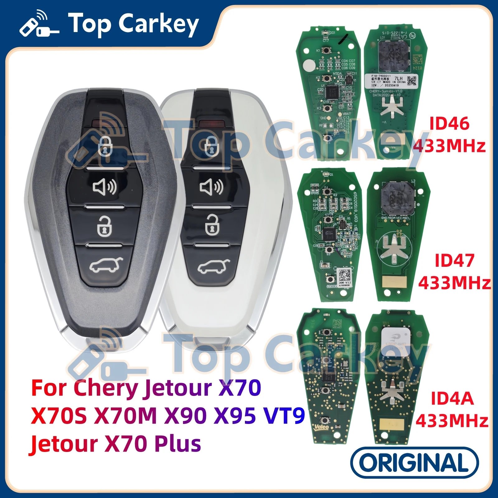 TopCarkey Original Smart Remote Key ID46 47 4A 433MHz for Chery Jetour X70 X70S X70M X90 X95 VT9 Jetour X70 Plus