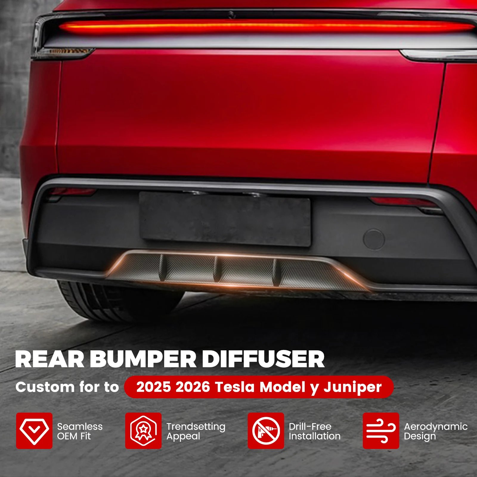 Tesla Model Y 2025-2026 Rear Bumper Spoiler Lip & Diffuser